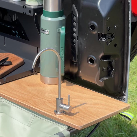 Our favorite way to use this? Right on the back of the rig. Check out our Tailgate Tables below to create a stable, convenient workspace for your faucet station. It’s the easiest way to upgrade your camp cooking setup.